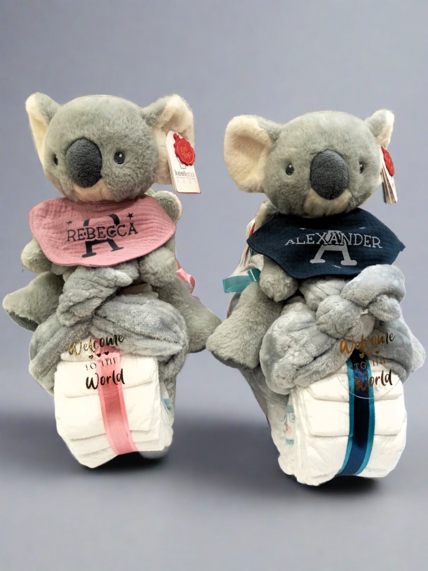 Rev up the cuteness factor with our Biker Nappy Cake! Made from eco-friendly recycled materials, this cake features a motorbike design and comes with a koala plush teddy and rattle, 32 Pampers nappies, a plush blanket, customisable bib, "Welcome to the world" plaque, and not forgetting, free delivery to the UK! Handmade and oh-so-adorable, it's a beautiful gift for any new family. (Beware: may cause excessive "awws"!) Perfect for new babies and baby shower gifts!