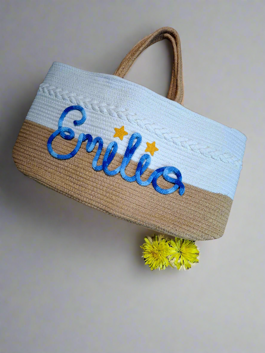 Personalised Nappy Caddy | Custom Baby Storage Basket with Name | Handmade Newborn Gift